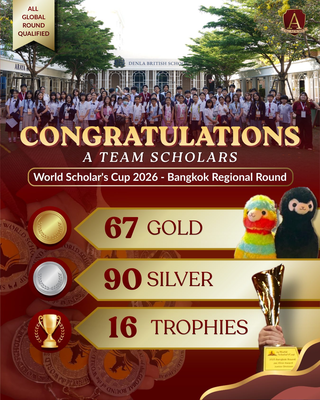 นักเรียนของเราสร้างความภาคภูมิใจด้วยการคว้า 67 เหรียญทอง 90 เหรียญเงิน และ 16 ถ้วยรางวัล จากการแข่งขัน World Scholar’s Cup รอบภูมิภาค!
